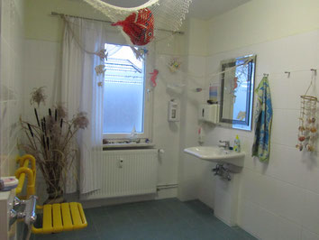 Auf 225 Quadratmetern befinden sich für 16 Tagesgäste die Garderobe, der Aufenthalts- bzw. Gemeinschaftsraum, drei Bäder, sechs Ruhe- und Schlafräume, eine Therapieküche, wo gerne die Gäste mitwirken können, das Büro und das Personalbad.
