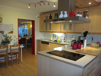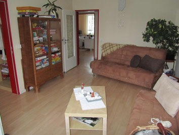 Auf unserer Terrasse kann man bei schönem Wetter vor dem Haus sitzen und spielen oder lesen.